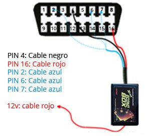 El producto se conecta con tres pines en la toma de diagnostico y uno de alimentación positivo (+) constante.